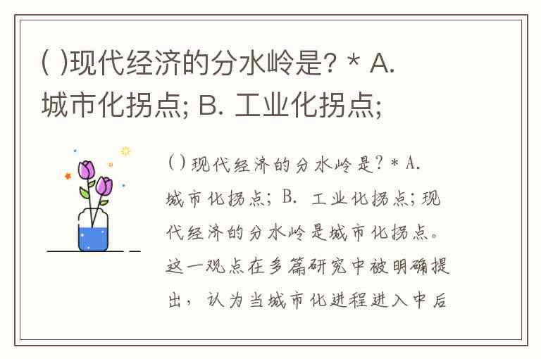 ( )现代经济的分水岭是? * A. 城市化拐点; B. 工业化拐点;