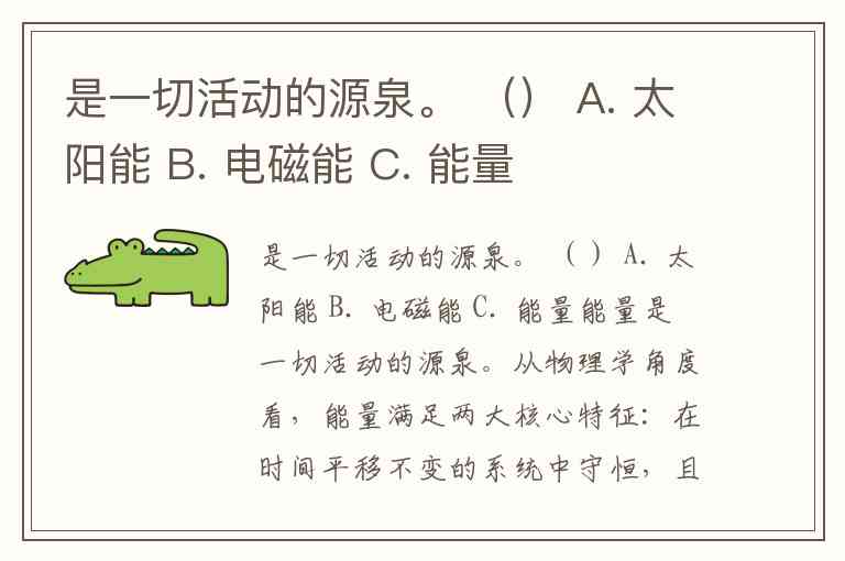 是一切活动的源泉。 () A. 太阳能 B. 电磁能 C. 能量