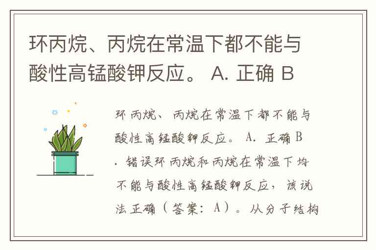 环丙烷和丙烷在常温下均不能与酸性高锰酸钾反应,该说法正确(答案:A)。