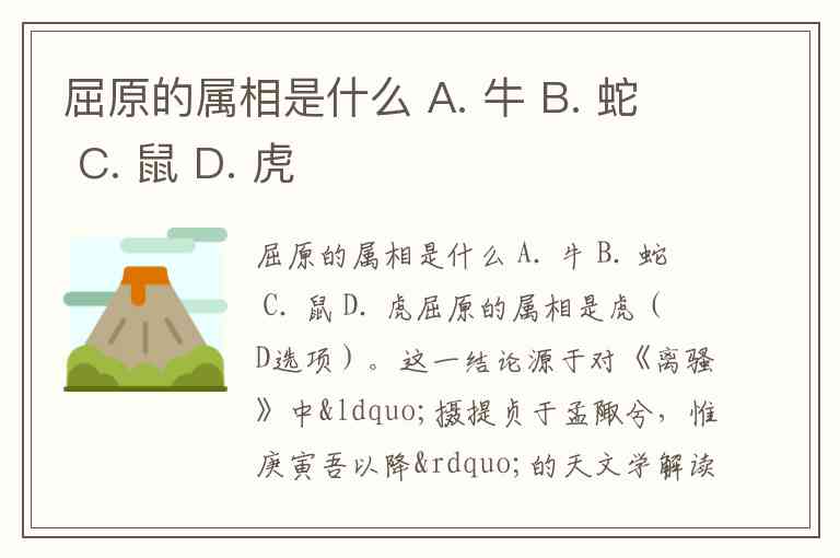 屈原的属相是什么 A. 牛 B. 蛇 C. 鼠 D. 虎
