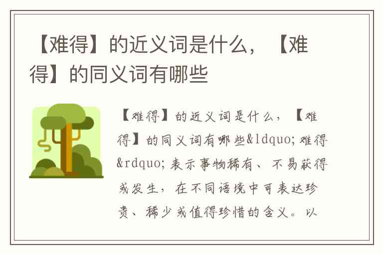 “难得”表示事物稀有、不易获得或发生,在不同语境中可表达珍贵、稀少或值得珍惜的含义。以下是其主要近义词及使用场景: