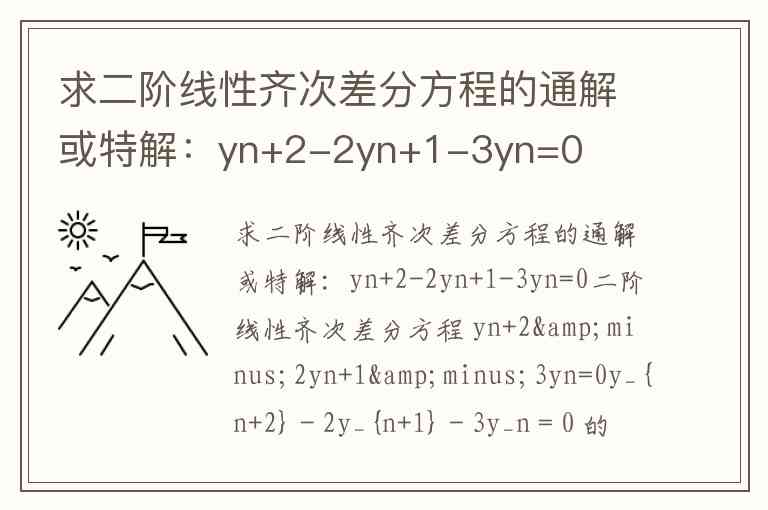 求二阶线性齐次差分方程的通解或特解:yn+2-2yn+1-3yn=0
