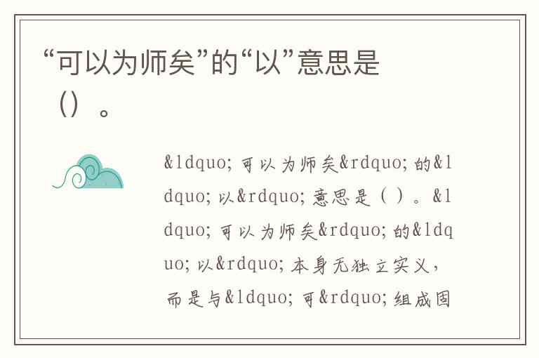 综上,判定“以”的含义需回归原句语法单元:当“可”与“以”紧密结合时,“以”丧失独立表意功能,仅作为“可以”的构词成分。这种用法在初中语文教材中亦被明确标注为“可以”整体表“能够”,而非拆分解读。理解这一点,有助于更准确把握孔子“学思结合”的教育理念——成为老师的核心是持续获得新知的能力,而非单纯依赖旧知识的积累。