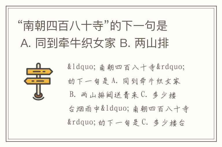 “南朝四百八十寺”的下一句是 A. 同到牵牛织女家 B. 两山排闼送青来 C. 多少楼台烟雨中