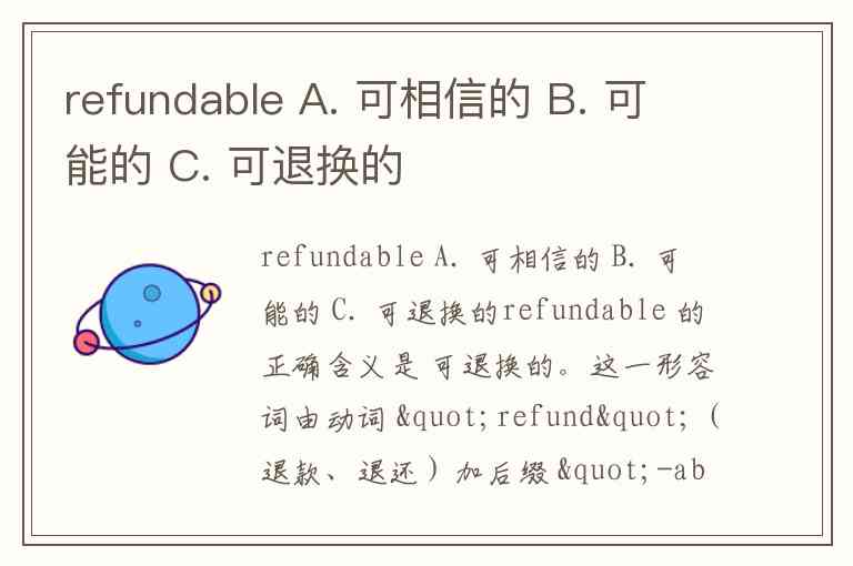 在消费场景中,当商家标注 "refundable ticket" 或 "refundable deposit" 时,明确意味着顾客有权在特定条件下获得退款。相比之下,"可相信的" 对应 "reliable","可能的" 对应 "possible",均与 "refundable" 的核心语义(与退款相关的可操作性)无关。