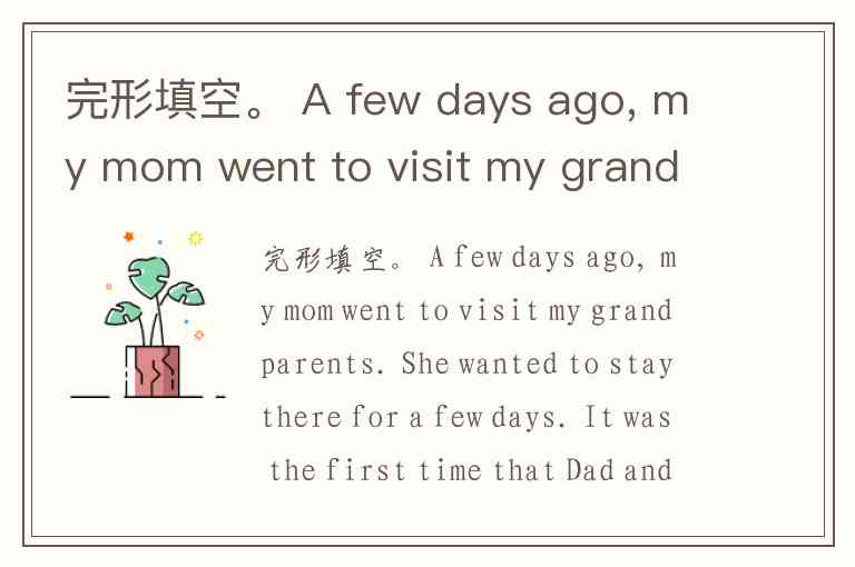 这篇短文通过“妈妈外出时我和爸爸独自在家”的经历,展现了对母亲日常家务辛劳的理解。解题需结合上下文语境和词汇辨析。