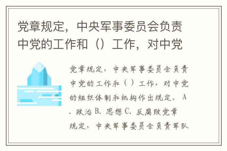 党章规定,中央军事委员会负责中党的工作和()工作,对中党的组织体制和机构作出规定。 A. 政治 B. 思想 C. 反腐败