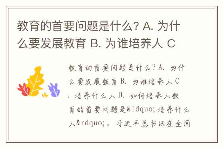 教育的首要问题是什么? A. 为什么要发展教育 B. 为谁培养人 C. 培养什么人 D. 如何培养人