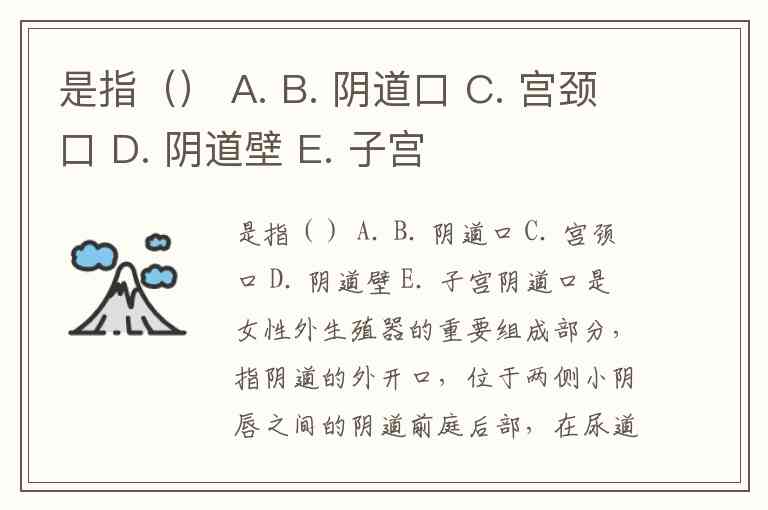 是指() A. B. 阴道口 C. 宫颈口 D. 阴道壁 E. 子宫