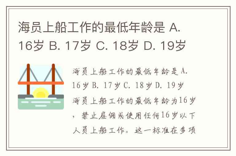 海员上船工作的最低年龄是 A. 16岁 B. 17岁 C. 18岁 D. 19岁