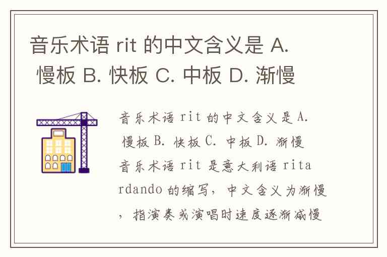 音乐术语 rit 的中文含义是 A. 慢板 B. 快板 C. 中板 D. 渐慢