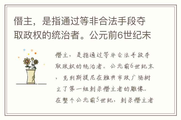 僭主,是指通过等非合法手段夺取政权的统治者。公元前6世纪末,克利斯提尼在雅典市政广场树立了第一组刺杀僭主者的雕像。在整个公元前5世纪,刺杀僭主者雕像是市政广场上仅有的献给凡人的雕像。这一举措有利于 A. 维护贵族集体议政 B. 削弱城邦宗教势力 C. 促进城邦艺术繁荣 D. 增强民主政治认同