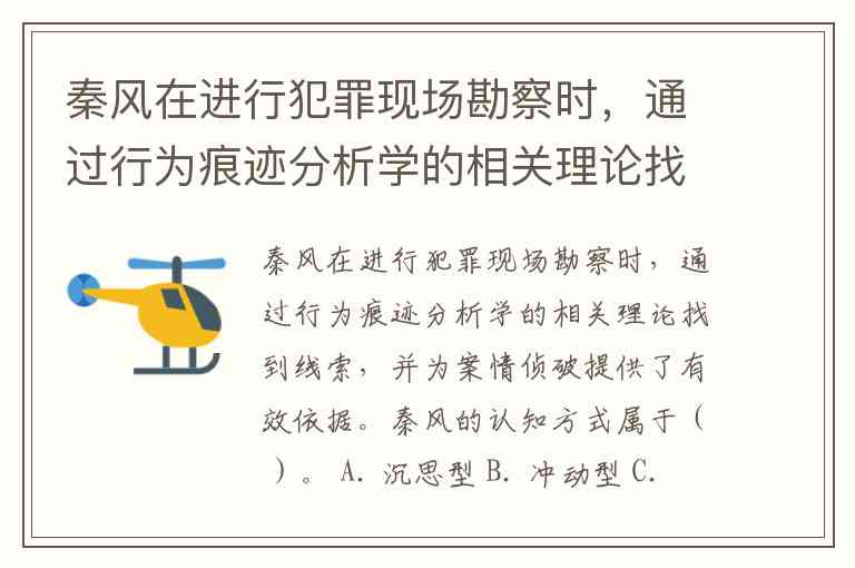 秦风在进行犯罪现场勘察时,通过行为痕迹分析学的相关理论找到线索,并为案情侦破提供了有效依据。秦风的认知方式属于( )。 A. 沉思型 B. 冲动型 C. 场独立型 D. 场依存型