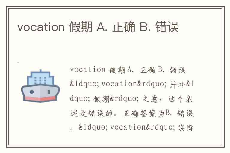 “vocation”并非“假期”之意,这个表述是错误的。正确答案为B. 错误。