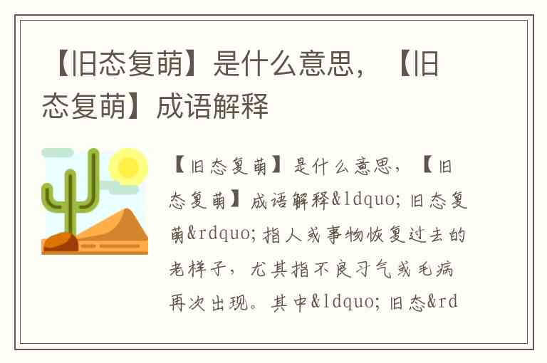 【旧态复萌】是什么意思,【旧态复萌】成语解释