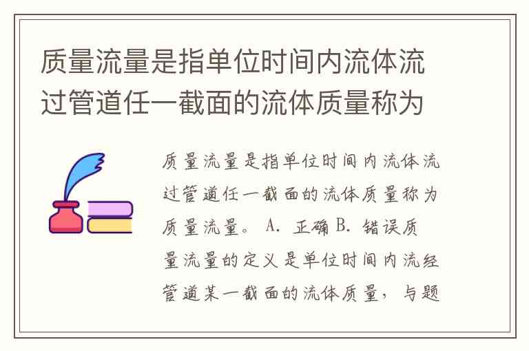 质量流量的定义是单位时间内流经管道某一截面的流体质量,与题目中的表述完全一致。这一概念在流体力学和工程应用中具有基础性地位,例如在石油输送、化工反应控制等场景中,质量流量的精确测量直接关系到生产效率和安全。该表述正确,答案为A。
