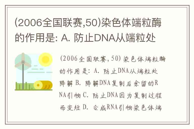 (2006全国联赛,50)染色体端粒酶的作用是: A. 防止DNA从端粒处降解 B. 降解DNA复制后余留的RNA引物 C. 防止DNA因为复制过程而变短 D. 合成RNA引物