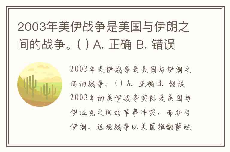 2003年美伊战争是美国与伊朗之间的战争。( ) A. 正确 B. 错误