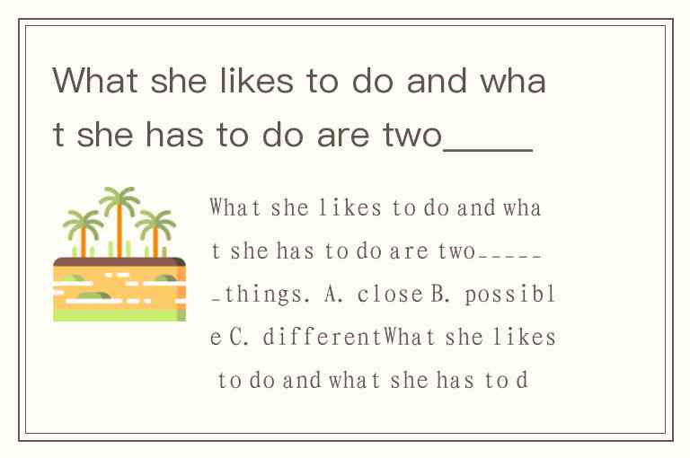 What she likes to do and what she has to do are two______things. A. close B. possible C. different