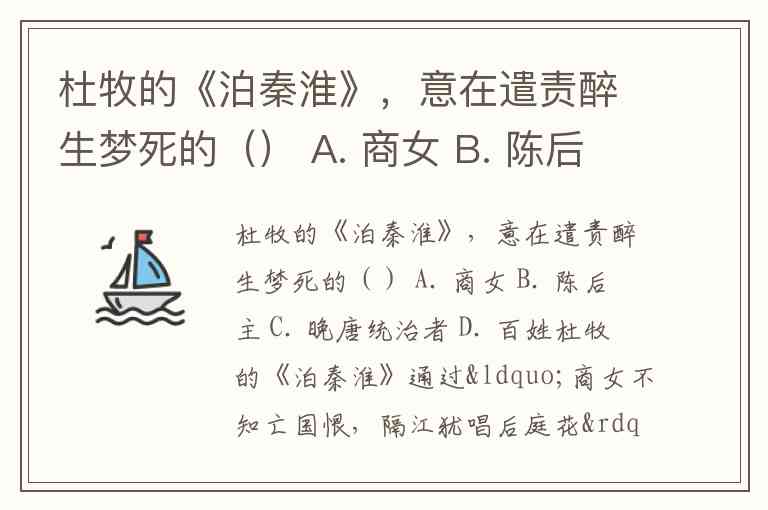 杜牧的《泊秦淮》,意在遣责醉生梦死的() A. 商女 B. 陈后主 C. 晚唐统治者 D. 百姓