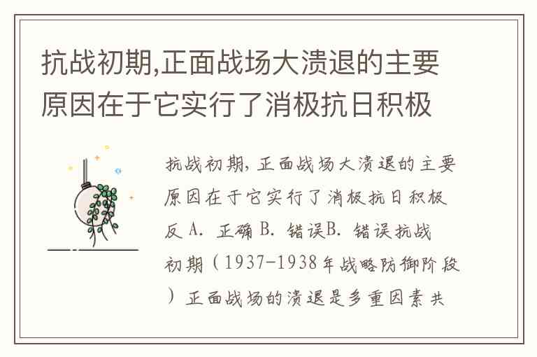 抗战初期(1937-1938年战略防御阶段)正面战场的溃退是多重因素共同作用的结果,而"消极抗日积极反共"这一表述主要适用于1938年武汉会战后国民党政策转向,并非初期溃退的主因。根据历史事实,其主要原因包括三个层面: