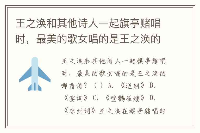 王之涣和其他诗人一起旗亭赌唱时,最美的歌女唱的是王之涣的哪首诗?() A. 《送别》 B. 《宴词》 C. 《登鹳雀楼》 D. 《凉州词》