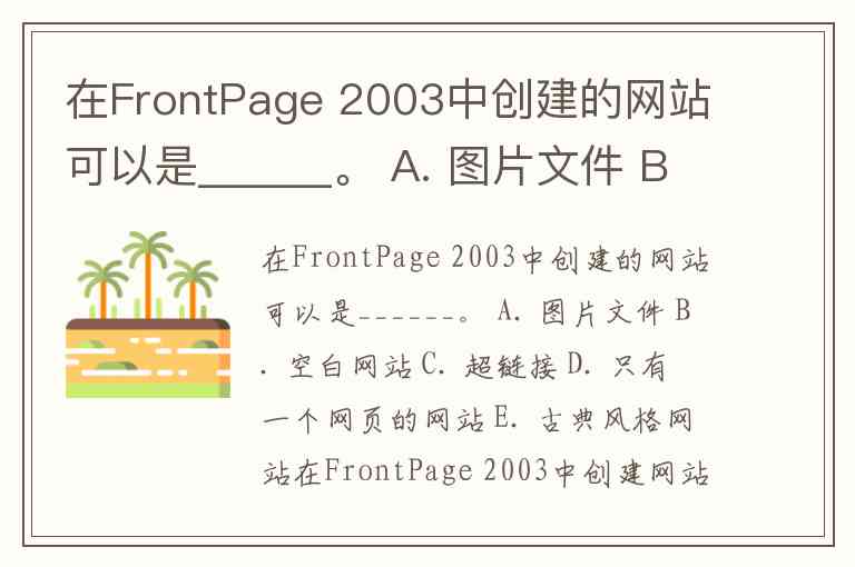 在FrontPage 2003中创建的网站可以是______。 A. 图片文件 B. 空白网站 C. 超链接 D. 只有一个网页的网站 E. 古典风格网站