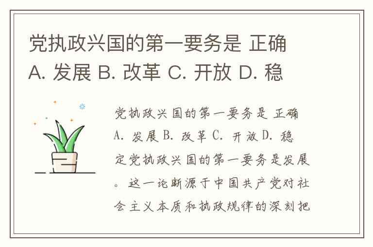 党执政兴国的第一要务是 正确 A. 发展 B. 改革 C. 开放 D. 稳定
