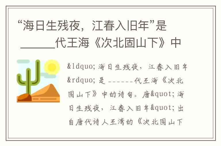 “海日生残夜,江春入旧年”是 ______代王海《次北固山下》中的诗句。
