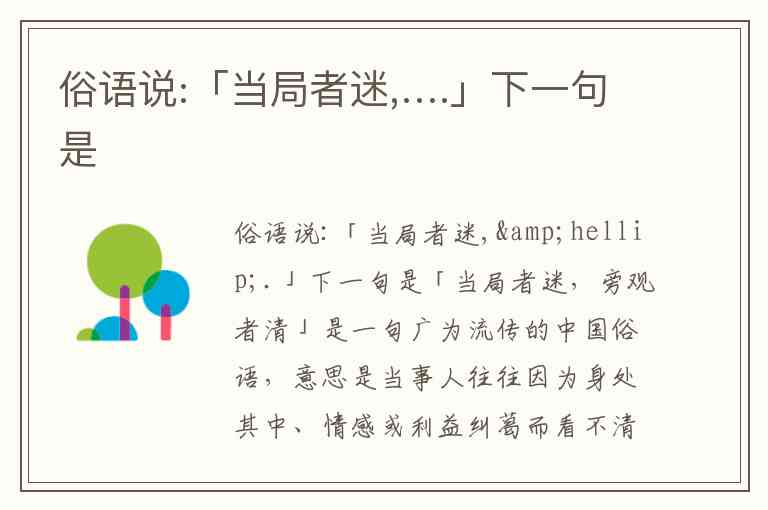 「当局者迷,旁观者清」是一句广为流传的中国俗语,意思是当事人往往因为身处其中、情感或利益纠葛而看不清事情全貌,反而置身事外的人能更客观、清晰地观察问题本质。这句俗语出自《旧唐书·元行冲传》:「当局称迷,傍(旁)观见审」,后演变为今天的固定表述。它提醒人们在面对复杂情况时,保持一定距离的观察和反思往往能带来更清醒的判断,就像下棋时棋手可能陷入战术迷局,而观棋者却能看清全局走势一样。生活中,当我们纠结于某个决定或困于某种情绪时,不妨听听旁观者的建议,或许能发现被自己忽略的关键信息。
