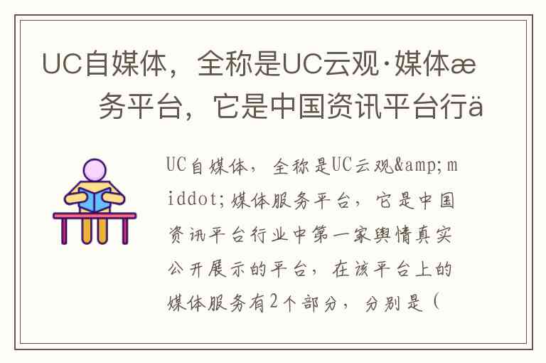 UC自媒体,全称是UC云观·媒体服务平台,它是中国资讯平台行业中第一家舆情真实公开展示的平台,在该平台上的媒体服务有2个部分,分别是( )、机构媒体。 A. 公众号 B. 订阅号 C. 企业号 D. 达人号