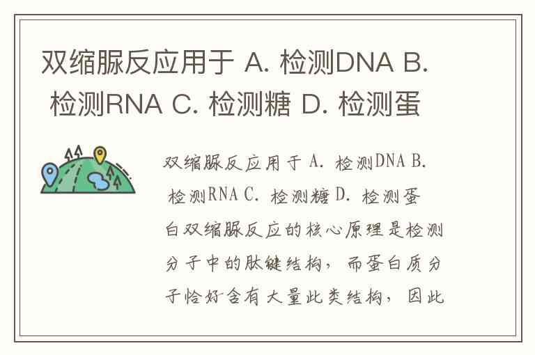 双缩脲反应用于 A. 检测DNA B. 检测RNA C. 检测糖 D. 检测蛋白