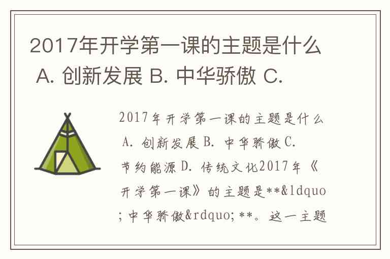 2017年开学第一课的主题是什么 A. 创新发展 B. 中华骄傲 C. 节约能源 D. 传统文化