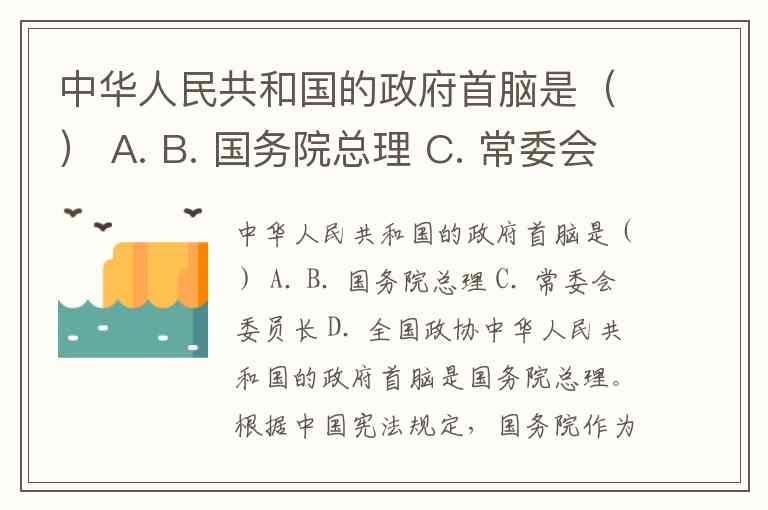 中华人民共和国的政府首脑是() A. B. 国务院总理 C. 常委会委员长 D. 全国政协