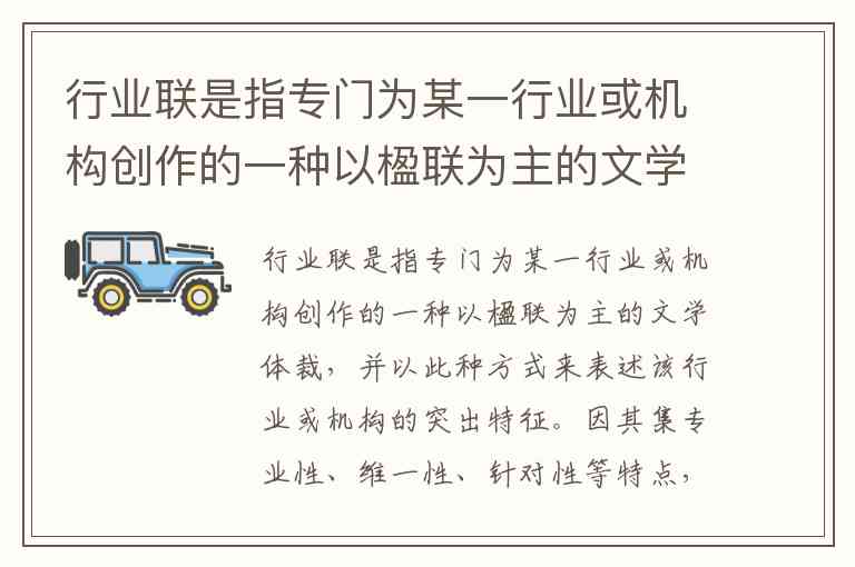 要判断哪个选项不属于行业联,需紧扣定义核心:专门为某一行业或机构创作,且能表述其突出特征。以下结合各选项具体分析: