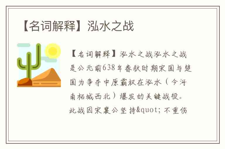 泓水之战是公元前638年春秋时期宋国与楚国为争夺中原霸权在泓水(今河南柘城西北)爆发的关键战役。此战因宋襄公坚持"不重伤、不禽二毛、不鼓不成列"的传统军礼,错失战机导致惨败,成为中国古代战争从"礼义之兵"向"诡诈奇谋"转型的标志性事件。
