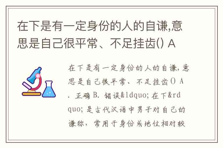 在下是有一定身份的人的自谦,意思是自己很平常、不足挂齿() A. 正确 B. 错误