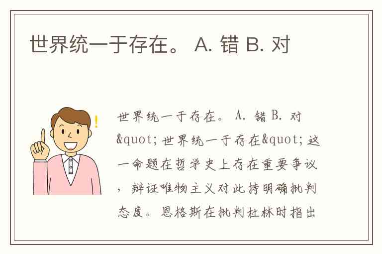 世界统一于存在。 A. 错 B. 对