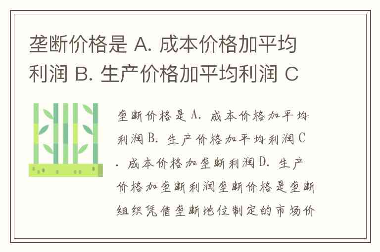 垄断价格是 A. 成本价格加平均利润 B. 生产价格加平均利润 C. 成本价格加垄断利润 D. 生产价格加垄断利润