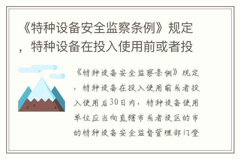 《特种设备安全监察条例》规定,特种设备在投入使用前或者投入使用后30日内,特种设备使用单位应当向直辖市或者设区的市的特种设备安全监督管理部门登记。() A. 正确 B. 错误