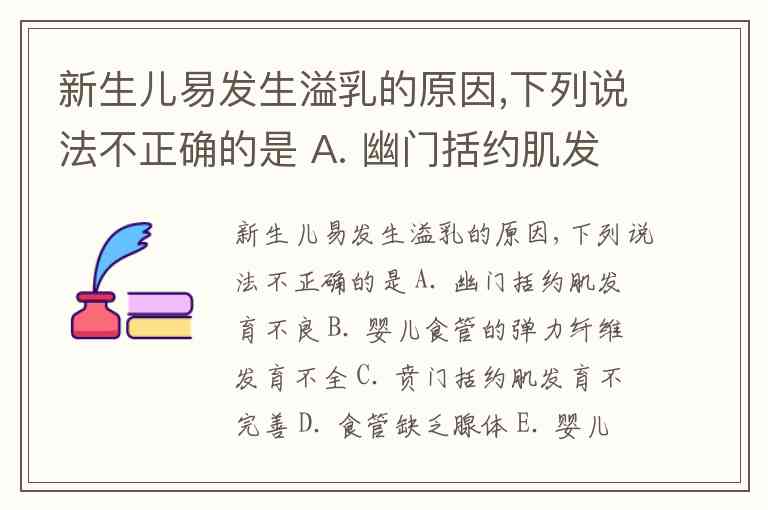 新生儿易发生溢乳的原因,下列说法不正确的是 A. 幽门括约肌发育不良 B. 婴儿食管的弹力纤维发育不全 C. 贲门括约肌发育不完善 D. 食管缺乏腺体 E. 婴儿食管壁肌肉发育不全