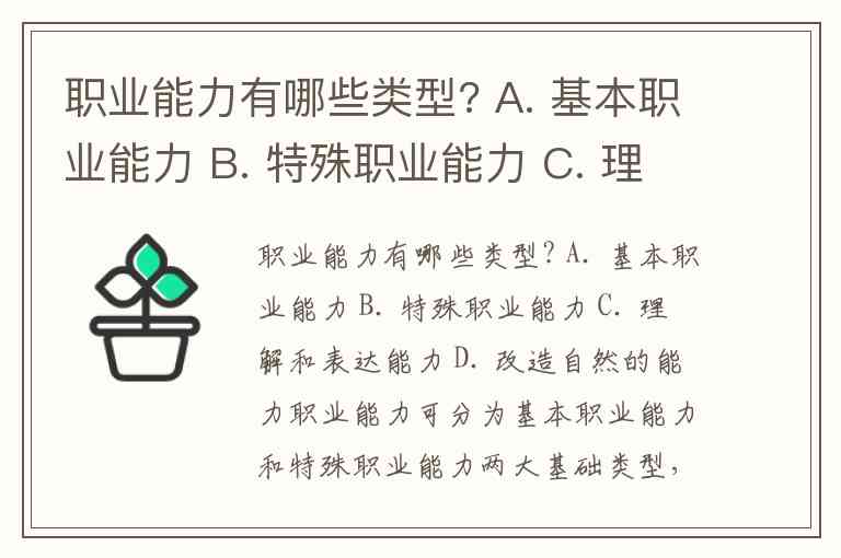 职业能力有哪些类型? A. 基本职业能力 B. 特殊职业能力 C. 理解和表达能力 D. 改造自然的能力