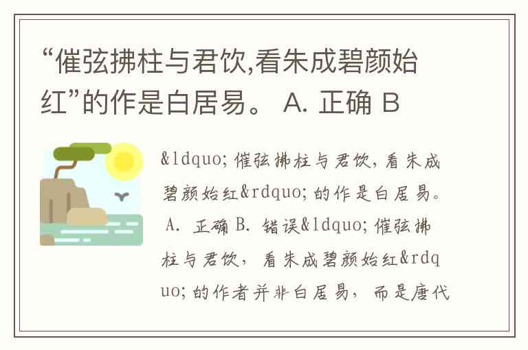 “催弦拂柱与君饮,看朱成碧颜始红”的作者并非白居易,而是唐代诗人李白,因此题目说法错误,答案选B。