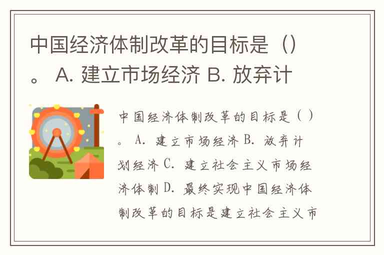 中国经济体制改革的目标是()。 A. 建立市场经济 B. 放弃计划经济 C. 建立社会主义市场经济体制 D. 最终实现