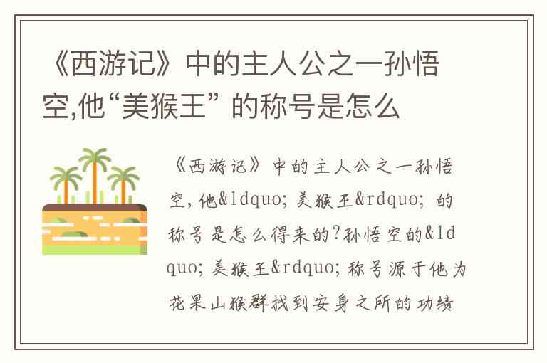 《西游记》中的主人公之一孙悟空,他“美猴王” 的称号是怎么得来的?