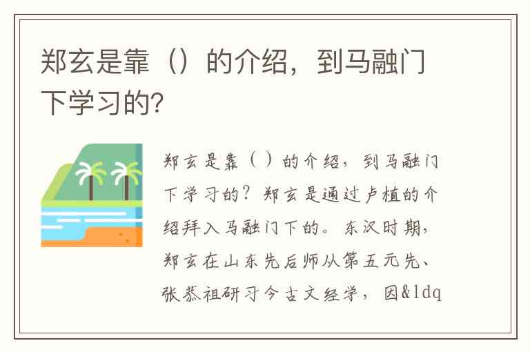 郑玄是靠()的介绍,到马融门下学习的?