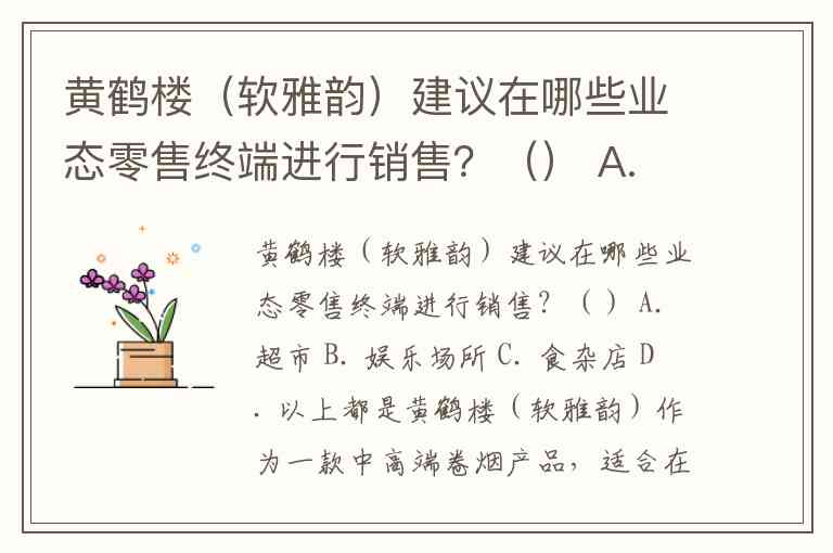 黄鹤楼(软雅韵)建议在哪些业态零售终端进行销售?() A. 超市 B. 娱乐场所 C. 食杂店 D. 以上都是