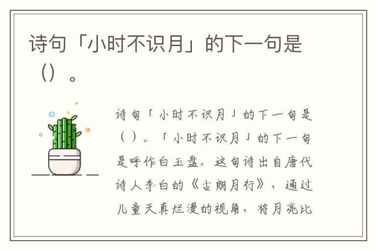 诗句「小时不识月」的下一句是()。