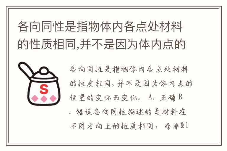 各向同性描述的是材料在不同方向上的性质相同,而非“各点处”的性质相同。题目混淆了“方向”与“位置”的概念——材料不同点位置的性质相同属于“均匀性”的定义,而非各向同性。因此,该表述错误。