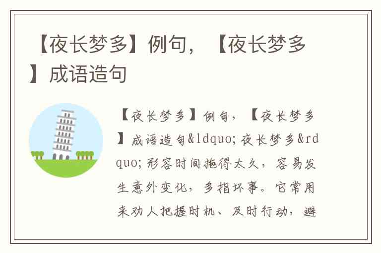 这个成语提醒我们:面对机遇或风险,果断行动往往比犹豫观望更重要。你最近是否也遇到过需要“避免夜长梦多”的情况?